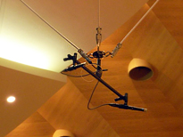 吊りマイク装置は、プロセニアムアーチ部分にかかる位置に取付けられることが一般的です。