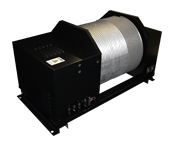 3点吊り等に組んであるケーブルに、照明バトン等が降りてきた場合、トルクリミッタによりケーブル巻取りドラムが照明バトンの下降に合わせ空転します。
