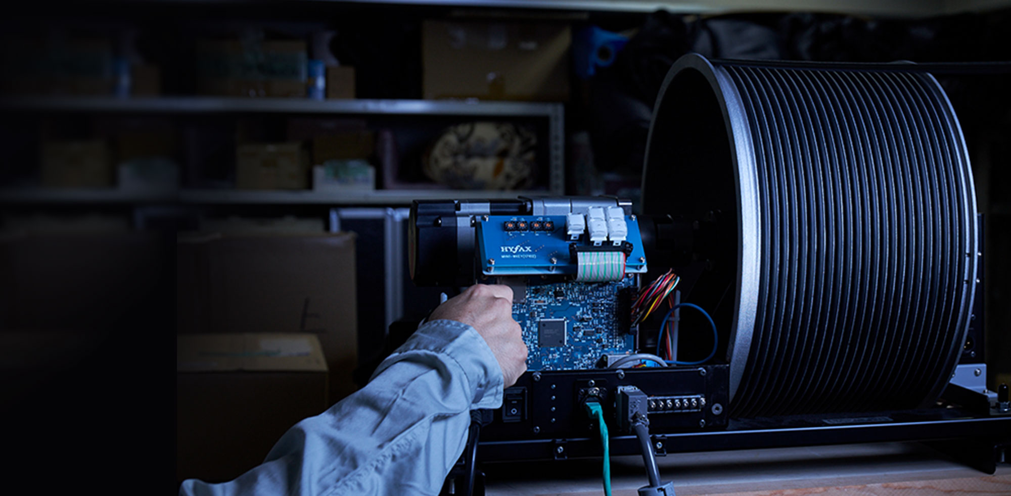 開発がスタートしたのは、5年ほど前。従来モデルの巻上機に使用していたモーターの生産中止の知らせがきっかけでした。この時、「さまざまホールで吊マイクをご利用のお客さまのご要望を叶える、新しい吊マイク装置をつくろう」とリサーチを開始しました。まず、「マルチチャンネル録音をする機会が増えており、数多くのマイクを吊りさげたい」という要望がありました。ホール内に多くの吊マイク装置を設置できるよう「多チャンネル録音ができる多点吊マイクの構成ができること」と、お客さまが使いこなすために「操作性を向上させること」が、電動吊マイク装置「MHN1」開発の2大ミッションになりました。