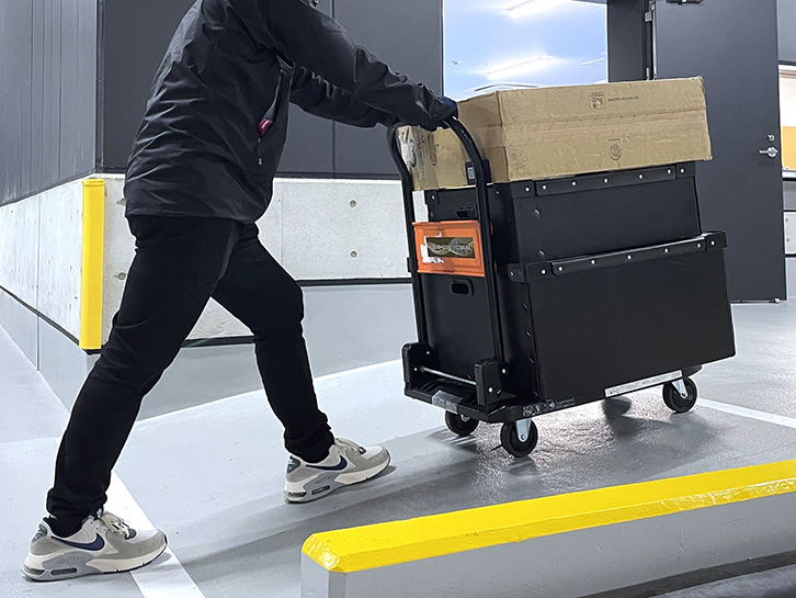 台車やキャスター付きのケースを使うと、身体への負担をかなり軽減できます。ただ、便利だからといって積み上げすぎると、荷崩れなどの事故に繋がりかねません。