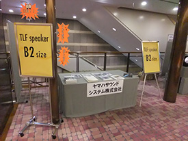 ヤマハサウンドシステムは2014年6月5、6日に石川県立音楽堂で開催された「平成26年度 全国公立文化施設協会 研究大会(石川大会)」の協賛事業として、邦楽ホールのロビーにて、TLFスピーカーを展示しサウンドサイネージの紹介を行ないました。