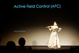 室内の残響感、音量感などを支援するActive Field Control(AFC)の紹介では、松本 亜美さん演奏のフルートにより、響きの少ない会場が豊かな響きの空間に変わる様子を体感いただきました。