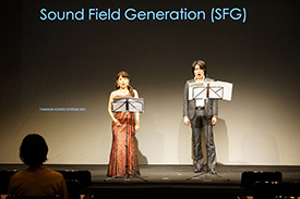 実在する空間の音響データを基に、音場を創生するSound Field Generation (SFG) の紹介では、ソプラノ歌手 相原 れいなさんとバリトン歌手 西垣 俊紘さんのアカペラにより、大聖堂やコンサートホールにいるような音の広がりを体感いただきました。