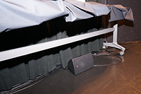 会場にはAFC、SFGのために天井に8本のマイクと14台のスピーカーを吊り、音像を移動させるTheater Surroundのデモンストレーションのためにはさらにスピーカーを8台、床の上に設置しました。