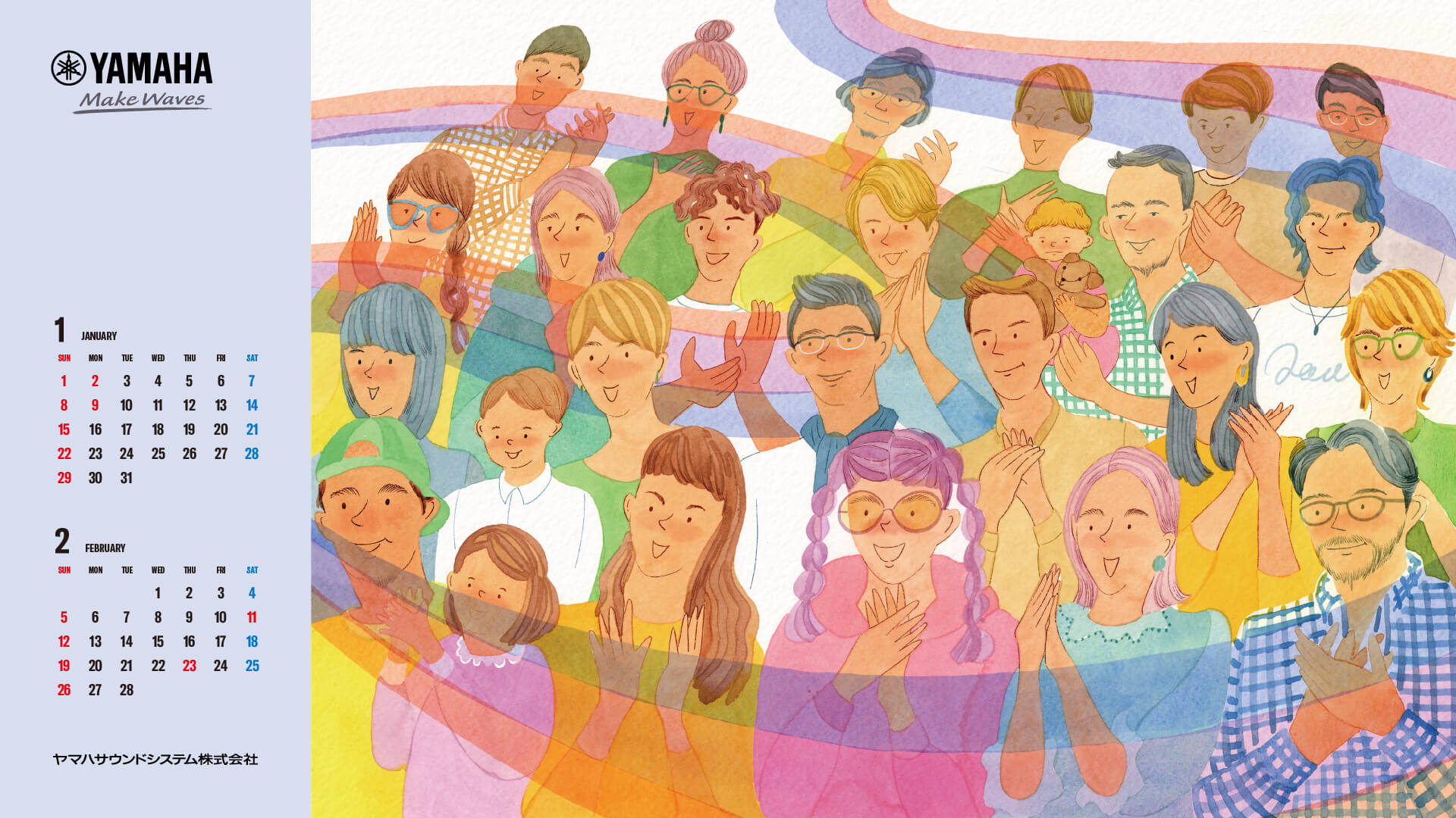 私たちは、施設の皆さまと共に『感動の瞬間』をつくるため、いい音を追求しています。 施設から活気があふれ、街全体へ楽しさが広がる。文化に触れる人々が増え、豊かな世界へと活気づいていく。そんな想いをカレンダーに込めて作りました。