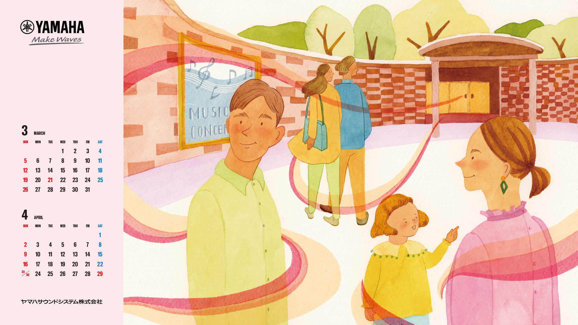 私たちは、施設の皆さまと共に『感動の瞬間』をつくるため、いい音を追求しています。 施設から活気があふれ、街全体へ楽しさが広がる。文化に触れる人々が増え、豊かな世界へと活気づいていく。そんな想いをカレンダーに込めて作りました。